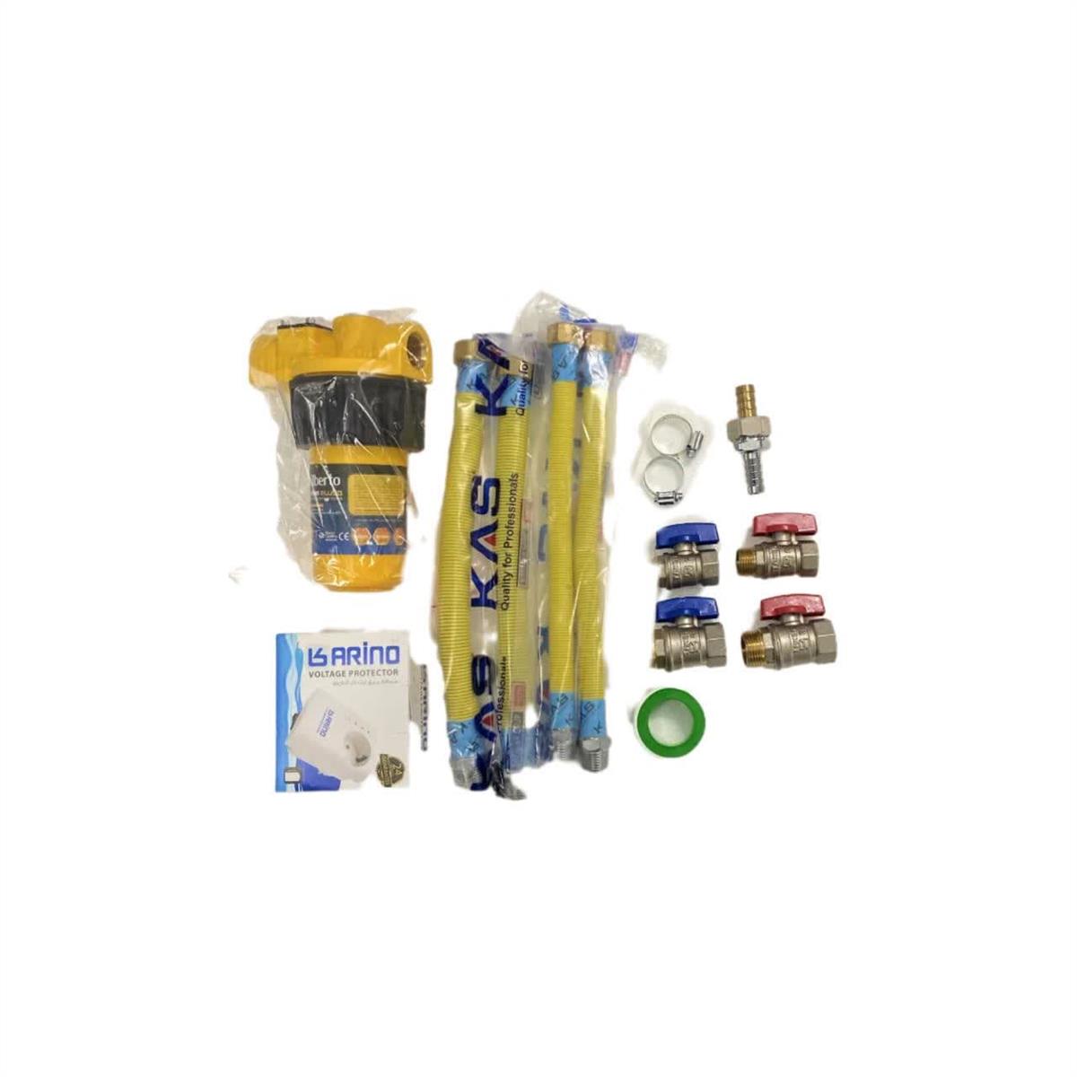 برای راهاندازی انواع پکیج شوفاژ دیواری به تجهیزات نصب استاندارد نیاز است. این اقلام به منظور اتصال آب سرد ورودی به دستگاه پکیج دیواری، قطعاتی از جمله شیرآلات رفت و برگشت آب سرد و آب گرم ورودی، شیلنگهای حصیری،محافظ برق، سختیگیر مغناطیسی، میباشد.